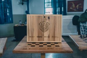 Durante la mañana se hizo entrega de cuatro mesitas y dieciséis sillas, cinco mesas con tableros con piezas de ajedrez, una caja porta bandera protocolar que sirve para guardar la bandera de ceremonias y una caja de juegos didácticos algunos confeccionados con madera reciclada y otros con papel reutilizado. El equipamiento es resultado del trabajo del Área de innovación y diseño de EMEC, que creó un producto 100% circular realizado con maderas provenientes del scrap que llega a la EMEC.