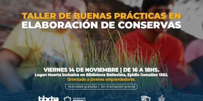 El viernes 14 de noviembre de 16 a 18 horas se desarrollará un taller de buenas prácticas para la elaboración de conservas. La actividad se realiza en el marco del Programa de Huertas inclusivas que desarrolla la Gerencia de Educación Ambiental y Vinculación Social de BioCórdoba. El taller es gratuito, no requiere inscripción previa, está dirigido a jóvenes y al público interesado en la temática y se hará en la Biblioteca Bellavista (Elpidio González 1582).