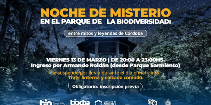 El viernes 13 de marzo se desarrollará una visita nocturna “La Noche de Misterio en el Parque de la Biodiversidad: entre mitos y leyendas de Córdoba, prevista de 20:00 a 23:00 horas.